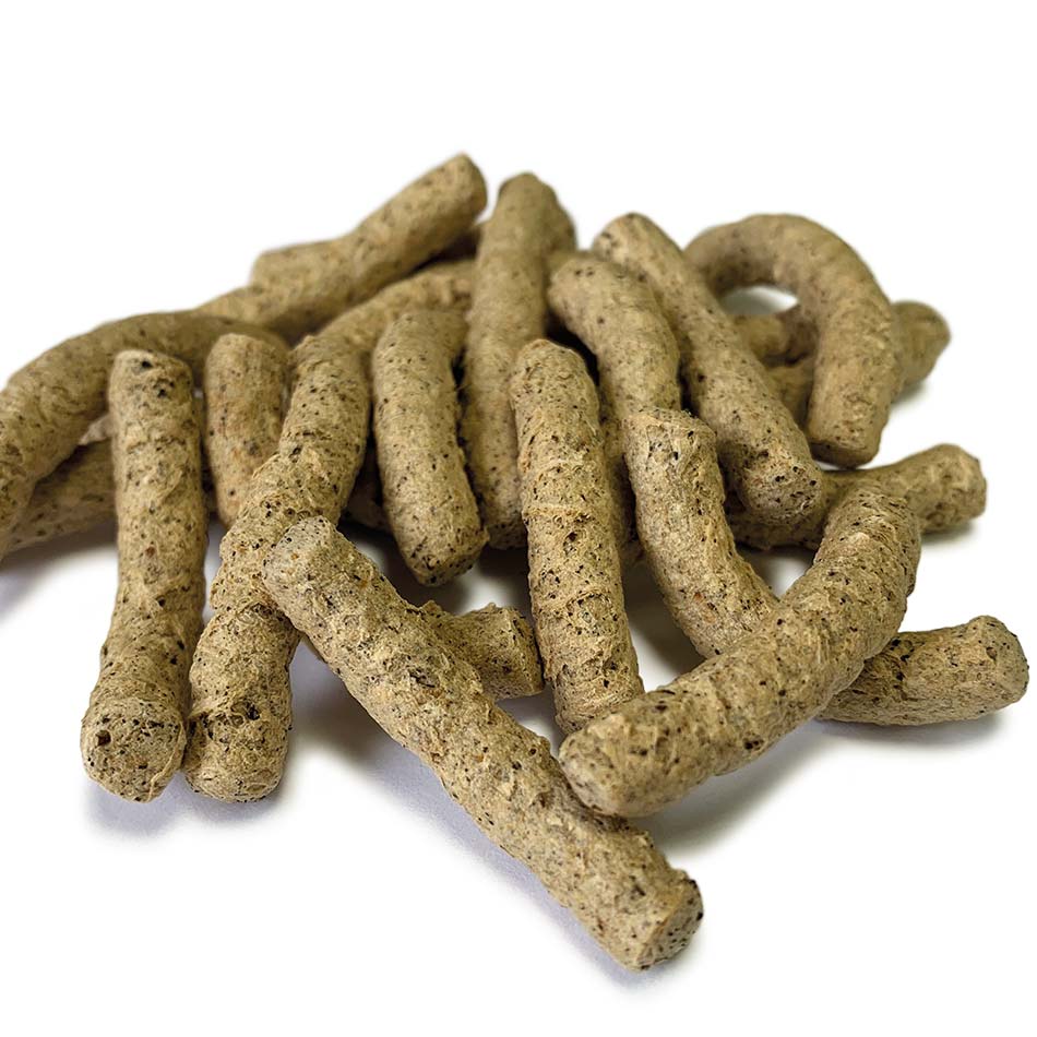 Das innovative Herstellungsverfahren ermöglicht die Verarbeitung diverser Rohstoffe in Form ganzer Körner, gut rieselfähiger Granulate, Grieße und Mehle (> 300µm). Dies erlaubt die Herstellung einer Vielzahl an Produkten und Halbfabrikaten. So können diverse Getreidesorten, Hülsenfrüchte, Gemüse- und Obstfasern, Stärken, Zucker, tierische Rohstoffe (z.B. Schweineschwartengranulat, Insektenpulver), getrocknete Milchbestandteile und Proteinpulver eingesetzt werden. Ein Schwerpunkt liegt in der Verarbeitung von anfallenden Nebenprodukte aus anderen Produktionsprozessen (z.B. Frucht-, Gemüsefasern, Biertreber, Trester) zu hochwertigen Snacks und Halbfabrikaten.