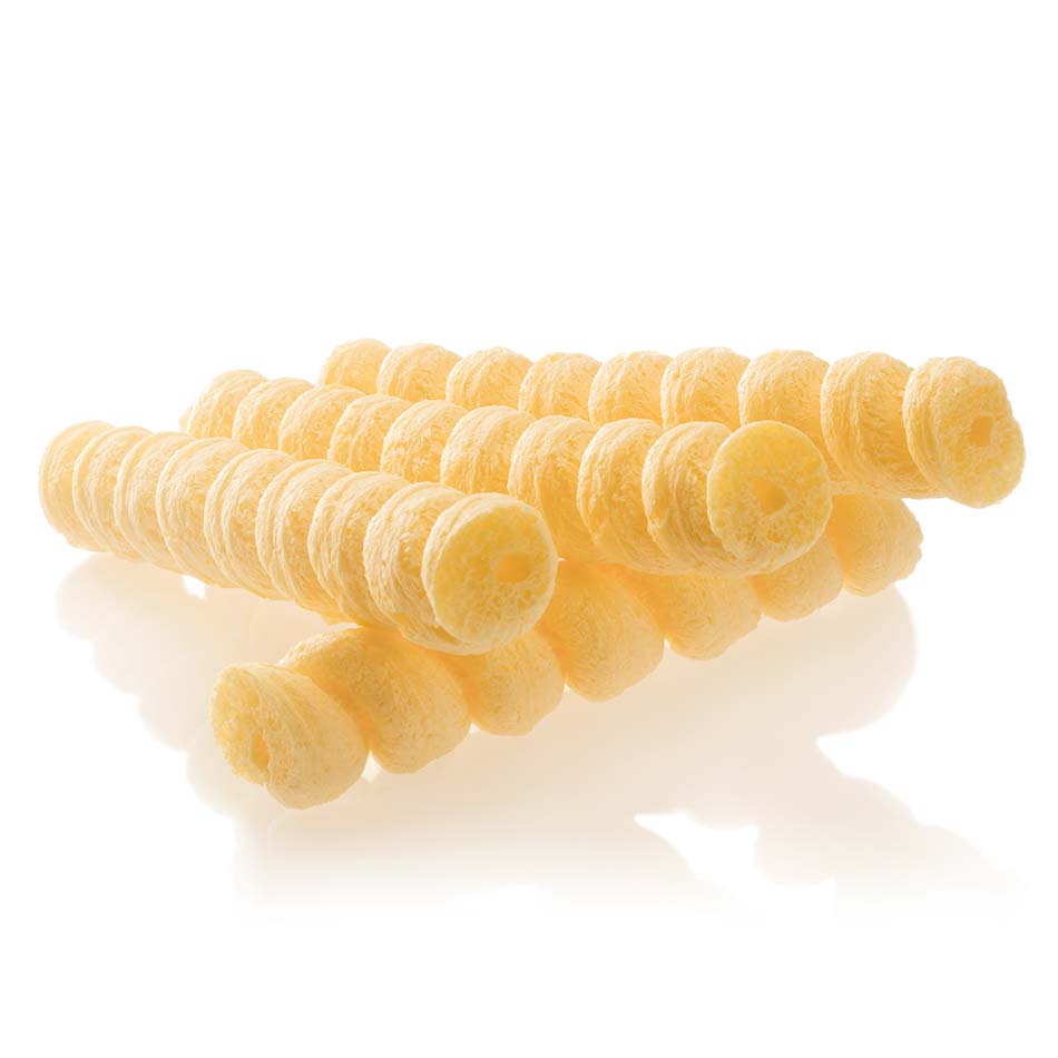 Als klassische Form sind Flips, Ringe und Bälle auf der ganzen Welt verbreitet. Die meisten Produkte bestehen aus Mais oder Reis. Während hierzulande Erdnussflips sehr beliebt sind, gibt es in anderen Ländern und Regionen andere Vorlieben.Die 3D-Schnitt-Technik ermöglicht es, aus hochwertigen Rohstoffen ein kreatives Produkt herzustellen. Gemeinsam entwickeln wir spannende Formen (beispielsweise Tiere, Logos etc.) mit gehaltvollen Inhaltsstoffen.